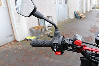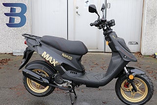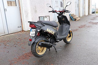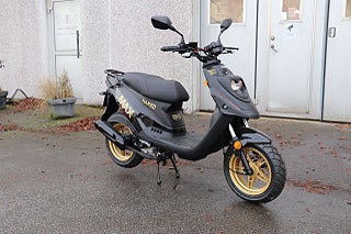 En EU-moped (45 km/h), fullt registrerad och godkänd för gatubruk.