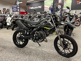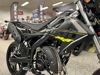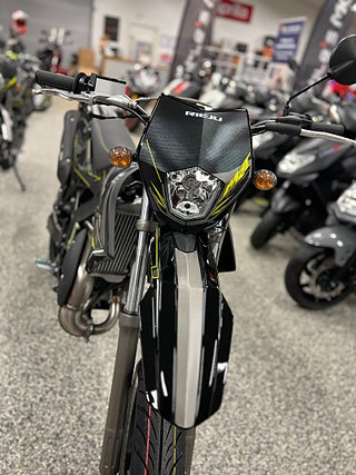 Den nya MRT-serien tar Rieju 50cc till en ny nivå. CAD-utvecklad kompakt dualbeam chassi ger den ultimata viktfördelningen både på och utanför väg. Längre hjulbas ger förbättrad vridstyvhet vid aktiv körning. Den moderna karossen och strålkastarnas design ger en MC-look. Med den senaste Minarelli AM6 vätskekylda 2-taktsmotor och den 6-växlade lådan får du kraften på rätt ställe. Digital multifunktionsdisplay för hastighet m.m.