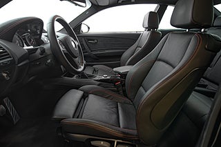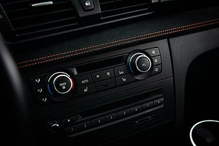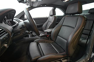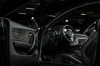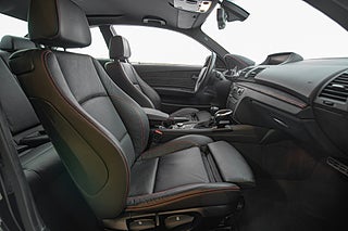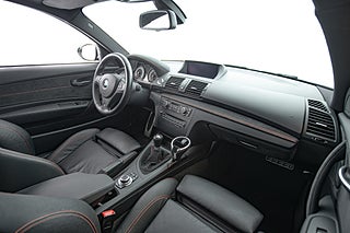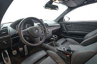Denna bil föddes 2012,det andra och sista tillverkningsåret för bilen,till den svenska marknaden i klassisk metallic svart exteriör. 1 M erbjöds bara i tre kulörer och samtliga lutade sig tungt på grundbilen,BMWs normala 1-serie för sin interiör. Svart läder var genomgående på samtliga bilar. 1 M fick förvisso delar av dekorlist i alcantara och en orange söm genomgående i hela interiören men i övrigt kändes mycket igen från andra 1-serie varianter. Exteriört genomgick bilen däremot en större förändring. Både fram och bak-skärmar breddades för att göra plats till en matig hjul uppsättning och front och bak partier omarbetades för att ge bilen ett mer aggressivt framträdande. Något man onekligen lyckades med.
