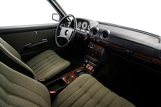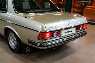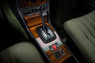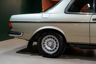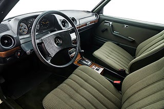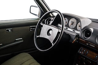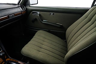 Svensksåld Mercedes Benz 230 CE Coupé (W123) från 1983 i ett enastående originalskick. Såld ny på Philipsons i Lund till en herre från Lomma som ägde bilen ända fram till 2010. Lackerad i Thistle Green Metallic (aldrig omlackerad) med matchande grön inredning i tyg och vinyl med tjocka, mörkgröna mattor. Original 14" aluminiumfälgar i barock-design, kromdetaljer/lister i perfekt skick och elektrisk sollucka. Inredningen är helt felfri med perfekta Zebranoträpaneler, fläckfritt innertak och original Blaupunkt kassett-radio. Detta är en tidskapsel av rang och en sällsynt möjlighet för den riktigt kräsne Mercedes-entusiasten.