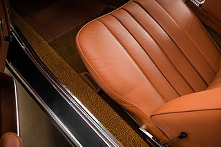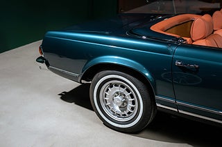 Bilen är lackerad i Mercedes Circon Green Metallic (257), en mörkt turkosblå kulör med gröna undertoner som tillsammans med den cognacsfärgade interiören och Bundt-fälgarna gör denna bil till något alldeles, alldeles extra.