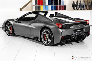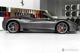 EXTRAUTRUSTNING:,Ferrari 458 Speciale Aperta 2015 Limited Edition 1 of 499 made, Grigio Ferro Met historic special order exterior metallic paint with Nero Alcantara interior, Fully specified as per standard spec on the Lim Ed 458 Speciale Aperta model, Additional options to this vehicle, Interior carpet in Nero Alcantara, Interior mats in Nero Alcantara with 458 Speciale Aperta logos stitched in Grigio Chiaro stitching, Carbon fibre side nolders, Fuel lid in Carbon fibre, Drivers seat adjustment device, Wheel arch panels in Nero Alcantara, Dashboard in Nero Alcantara, Rosso brake calipers, Front air flaps in Carbon fibre, Parcel shelf in Nero Alcantara, Cruise control, Safety belts in Rosso, Central part of Racing seats in Nero Alcantara, Outer b-post in Carbon fibre, Carbon fibre Racing seats, Cavallinos stitched in Rosso in neck rests, Fire extinguisher, Scuderia emblems in fenders, Exterior electrochromic rear view mirrors, Parking camera, Front and rear park sensors, Rev counter in Giallo, Interior stitching in Grigio Chiaro, Upper zone in Nero Alcantar, Navigation with phone connection, Racing Livery in Bianco, The car was delivered as new from Autoropa Official Ferrari dealer in Sweden spring 2015 and have had the same owner since, Annually maintained and in absolute new car condition, In stock ready for delivery, Ferrari Approved tested, Please call or e-mail for more info,