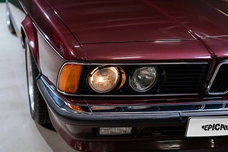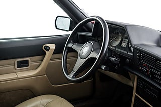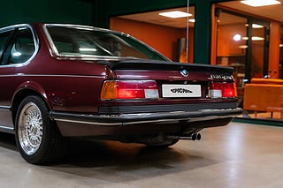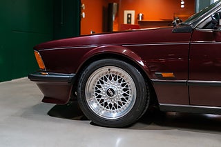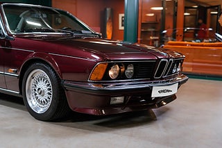 Svensksåld BMW 635 CSi E24 från 1987 i sällsynt fint skick. Såld ny av Förenade Bil och levererad i underbara Burgundrot Metallic med skinninredning i Pearl Beige. Givetvis ska det sitta splitfälgar från BBS på en E24:a och detta exemplar gör dig inte besviken med sina 16 tums RS005. Det kan inte bli mer härligt 80-tal/Yuppie än en vinröd 635CSi med beige inredning och den känslan finns bevarad i varenda detalj.