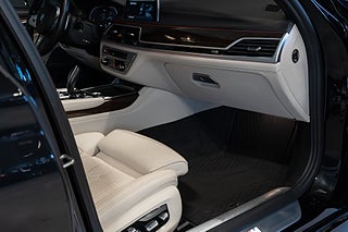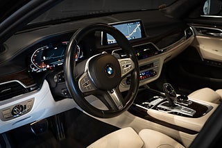 Svensksåld BMW 750 i xDrive M-sport i rätt utförande. Safirsvart metallic med elfenbensvit nappaläder. BMW 750 är bestyckad med en härlig V8:a på 4.4 liter som ger 530 hästkrafter och ett härligt vridmoment på 750 newtonmeter. En riktig lyxkryssare med fantastisk komfort.