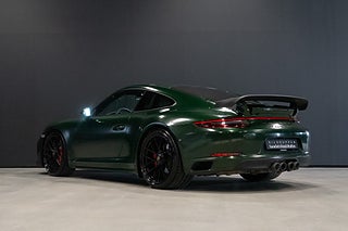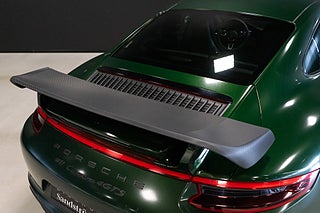 Porsche 911 991.2 Carrera 4 GTS PDK 450hk folierad i Hexis Sherwood Green (original lack Guards Red). Interiör i svart med svart läder/alcantara klädsel och röda kontrast sömmar. Bilen är modifierad för bankörning med bakvinge - front spoiler - diffusor folierade i kolfiber samt avgassystem med spjäll allt ifrån Techart. Växelpaddlar i smidd kolfiber look och backspeglar folierade i svart. Svensksåld med 2 brukare. Första registrering 2019-01-02. Miljöklass Euro 6 med låga årsskatten på 2.384kr. Bränsleförbrukning 8.9/100km enligt tillverkaren.