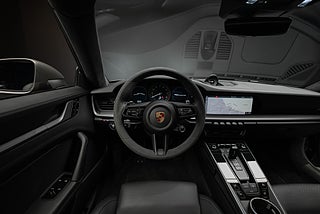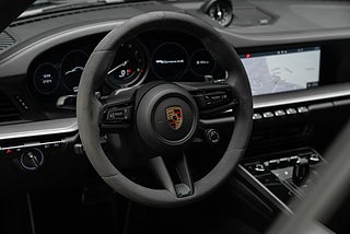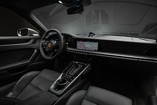 Porsche 992 Carrera 4S lackerad i Agate Grey metallic kombinerad med svart läder och alcantara interiör.