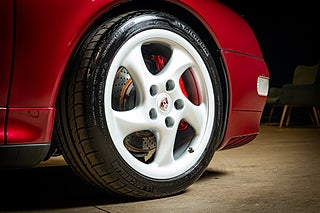 'Serioulsy bad news for the insect world' det var sista meningen i Porsches legendariska reklamkampanj för 993 Turbo, mer känd för sin rubrik - 'Kills bugs fast'. Och även om man lyckades med en tidlös reklam så är bilen ifråga än mer ikonisk. 993 Turbo är den ultimata iterationen av en luftkyld Porsche och en bil som för många representerar Porsche när det är som allra bäst. När bilen lanserades 1995 var den en skapelse som saknade motstycke. 408hk i sitt grundutförande men som här med det eftertraktade WLS paketet 430hk,fyrhjulsdrift och 0-100 på 4.5 sekunder var dom stora sälj punkterna men det var kombinationen med Porsches driftsäkerhet och användarvänlighet som gjorde bilen helt unik i marknaden. När den såldes ny var det en stilikon direkt och allt efter som åren går blir 993 Turbo bara bättre. Idag är det en tids markör för den sista, kanske bästa luftkylda Porschen. En tids markör med 430hk.