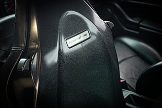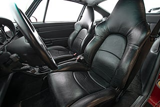 Öppna dörren och du möts av en funktionell och avskalad interiör. Klädsel i svart läder i kombination med en svart mattsats. Det är lätt att bli nostalgisk över charmen i en 993 interiör. Inga SportChrono paket, inga Burmeister system. Det som ingick utan extra kostnad var en körupplevelse. Framför dig fem mätartavlor. Strax där under 3 pedaler och i mitten en 6 växlad manuell växellåda. PDK i-think-not. Hastighetsmätaren löper hela vägen till 320 och i mitten noteras den påtagligt låga mätarställningen. Dryga 7500 mil på denna underbara Turbo. En annan höjdpunkt här är såklart sportstolarna som ger ökat stöd och elegant bär PORSCHE-scriptet i ryggen.