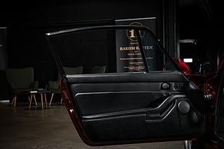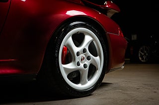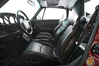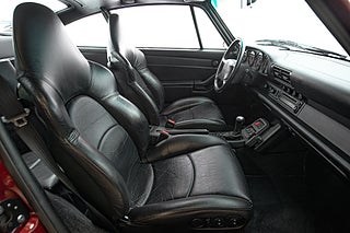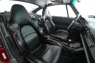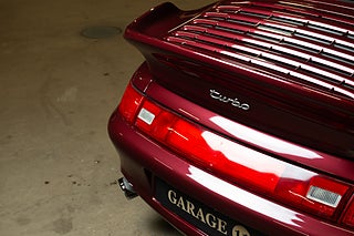Detta underbara exemplar briljerar som sagt i sin mörk röda exteriör som Porsche själva benämner Arena Red Metallic. Färgen är lika legendarisk som bilen själv då det var denna kulör som användes som lanserings färg för modellen. Vid första anblick förstår man snabbt varför bilen blev så älskad. Mjuka rena linjer i kombination med etoset funktion över form gör att bilen naturligt är vacker. Den stora vingen som mjukt viker sig över bakpartiet är hem till det enda emblemet på exteriören. 'Turbo'. 18" Turbotwist fälgar klädda i N-märkt Michelin gummi såklart över röda bromsok.
