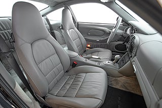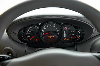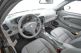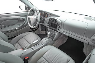 Interiören följer samma etos som exteriören med ett runt formspråk och en förarmiljö som är fokuserad kring föraren. Instrumenthuset är här uppdelad som traditionellt i 911:an med 5 analoga mätare med fokus på varvräknaren i mitten. Grått helläder i raff utförande genomgående med bekvämligheter som GPS och CD växlare.
