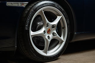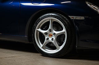 Denna eminena och underbart lågmilade 996 mk.2 från 2003 är av den andra iterationen av 996. En bil som fick ett antal uppdateringar som lyfte en redan fantastisk plattform. Exemplaret är väldigt välbevarat och uppvisar ett skick som verkligen måste upplevas. Klassisk Night Blue exteriör med 18" fem-ekrade hjul i en design som har blivit synonym med generationen. Baksidan bär ett enkelt 'carrera'-emblem i övrigt hålls exteriören enkel och stilren.