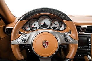 När uppdateringen av 997:an lanserades, som årsmodell 2009, såg världen lite annorlunda ut. Den globala finanskrisen 2008 hade ställt till det rejält och detta nådde så klart även Porsche med minskad efterfrågan som följd. Produktionen skars ner och jämför man med föregångaren 997.1 tillverkades 997.2-serien i betydligt färre exemplar ofta i alldagliga specifikationer såsom mörkgrått, silver eller svart. Därför blir vi på Epicar extra glada över att få presentera denna lågmilade skönhet i superklassisk och elegant färgkombination. Midnight Blue gör sig oerhört bra på 911:ans mjuka former och den varma och lyxiga inredningen är grädden på moset. Natural Brown är en "genomfärgad" och naturlig läderfärg, vilket innebär att det har ett mindre behandlat utseende jämfört med standardläder. Det levereras som "Natural Full Grain", vilket innebär att det är den högsta läderkvaliteten där skinnets naturliga struktur och mönster bevaras, snarare än att slipas ner. Bilen har också fått ett par trevliga tillägg från Porsche Exclusive Manufaktur/Sonderwunsch i form av kontrasterande sömmar i kulören Blå Serafil 827 på ovansidan av dörrsidorna, instrumentbrädan och på stolarna.