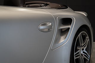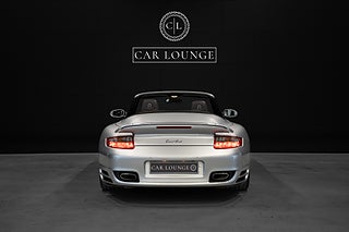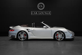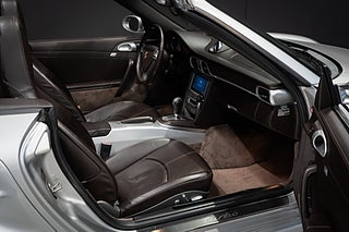 Porsche 911/997 Turbo cabriolet lackerad i Arctic Silver Metallic med elegant läderinteriör i Coccoa Brown. Modellen har den berömda " Flat-six" Mezger-motorn. Känd för sin pålitlighet, snabba respons och höga effekt. Detta är ett väl omhändertaget exemplar som är väl dokumenterat.