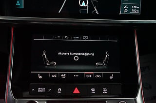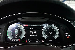 Utrustad med S-Line, Matrix LED-strålkastare, 360-kamera, digital cockpit, elbaklucka, Audi connect, Black Appearance Plus, ambient belysning, klimatanläggning även för baksätet, navigator, delskinn/alcantara-stolar samt valbara körprofiler: Komfort, Dynamisk, Eco, Auto och Individuell.