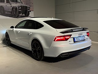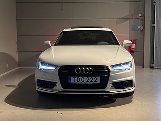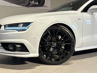 Nu erbjuder vi en mycket elegant och välutrustad Audi A7 från 2017 en bil som kombinerar kraftfull design med förstklassig komfort och avancerad teknik. Med sin låga, breda profil och sportiga linjeföring är detta en modell som verkligen utstrålar både status och körglädje. Bakom ratten möts du av en genomtänkt och lyxig förarmiljö där varje detalj håller hög kvalitet. Kupén är byggd för att ge en tyst, stabil och avslappnad kör upplevelse, oavsett om du kör i stadstrafik eller på längre resor. Sätena erbjuder mycket god komfort och tillsammans med bilens fina väghållning gör det varje resa till ett nöje. Den öppningsbara takluckan släpper in rikligt med ljus och skapar en luftig och trivsam känsla i hela kupén perfekt under årets varmare dagar. Med Head-Up Display får du viktig körinformation projicerad direkt i synfältet, vilket gör körningen både säkrare och mer bekväm då du kan hålla blicken på vägen. Bilens infotainment system är utrustat med Apple Car Play, vilket ger dig enkel tillgång till navigation, musik och samtal via din smartphone. Parkerings momenten blir smidiga tack vare back kameran som ger bra överblick och kontroll även i trånga utrymmen. För dig som uppskattar riktigt bra ljud är bilen utrustad med ett exklusivt BOSE ljudsystem, som levererar ett kraftfullt och klart ljud med hög detaljrikedom oavsett musikstil.