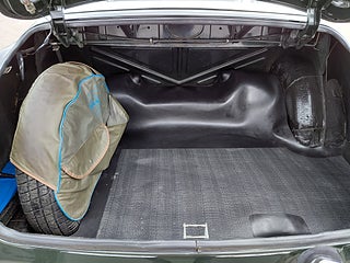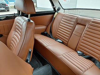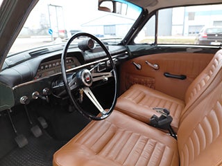 Detta exemplar är mycket ovanligt med sin riktiga (inte galon) läderklädsel. Bilen är i en mycket populär färgkombination. Mörkt grön med beige läder.