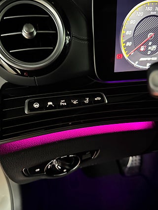 Den här bilen kombinerar brutal prestanda med en förstklassig komfortnivå och ett utrustningspaket som verkligen sticker ut. Under huven levererar den ikoniska V8-biturbon en körupplevelse som är lika explosiv som den är sofistikerad, samtidigt som fyrhjulsdriften ger maximalt grepp i alla lägen. Bilen är rikligt utrustad med bland annat: Airmatic – adaptiv luftfjädring som ger en perfekt balans mellan sport och komfort. Comand – avancerat infotainmentsystem med full kontroll över navigation, media och inställningar. Distronic Plus – intelligent farthållare för en trygg och avslappnad körning. Exclusive Leather – exklusiv läderklädsel som lyfter interiören till premiumklass. Interior Light Package – stämningsfull ambient belysning i kupén. Keyless-Go Package – smidig nyckelfri start och låsning