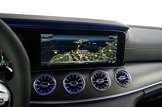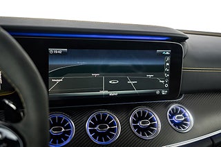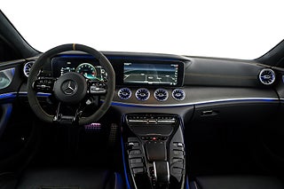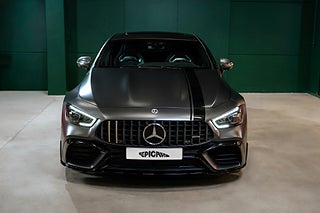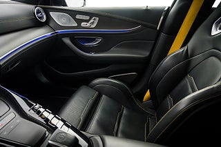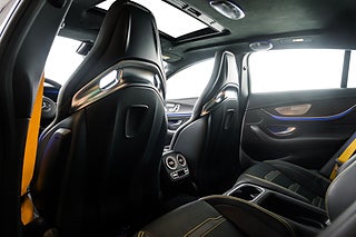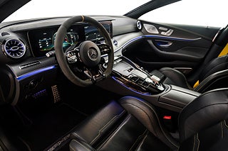 Mercedes-Benz GT 63 S AMG Edition 1 från 2019. Limiterad specialutgåva av toppmodellen GT 63 S för att fira lanseringen av AMG GT 4-door Coupé och tillverkad under endast ett år. Vårt exemplar är lackerat i Graphite Grey Magno med inredning i Magma Grey/Black Exclusive Nappaläder med gula kontrastsömmar och gula bälten. Edition 1 har flera detaljer som utmärker sig från en vanlig GT63 4-door bland annat: