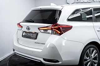 Här erbjuds en välutrustad Toyota Auris 1.8 Touring Sports Hybrid e-CVT - en smart kombination av körglädje, komfort och låg förbrukning. Den självladdande hybridtekniken ger en tyst och mjuk körning, särskilt i stadstrafik, samtidigt som den automatiska e-CVT-lådan gör varje resa avslappnad och smidig.