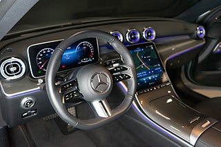 Mercedes-Benz C 300 e AMG Premium 313hk i färgen High-Tech Silver metallic med svart läderklädsel. Interiörpaneler och mittkonsol i metallstruktur samt svart innertak i tyg. Takrails i svart och sportratt i nappa. Utrustad med AMG Line Premium. Minnespaket. Nightpaket. MBUX Navigationspaket. Keyless-GO komfortpaket. Vinterpaket. Parkeringspaket. Interiört belysningspaket. Bagagerumspaket. Förvaringspaket. USB-paket. Spegelpaket. Svensksåld med 1 brukare. Leasebar för företag. Första registrering 2024-12-03. Miljöklass Euro 6 med låga årsskatten på 360kr. Bränsleförbrukning 0.6/100km vid blandad körning enligt tillverkaren. El räckvidd upp till 109km per laddning.