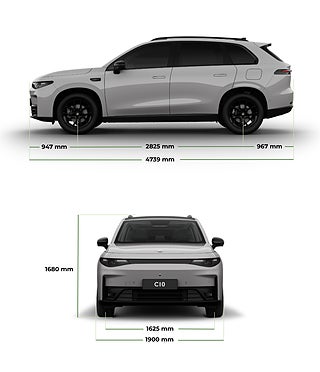 Räckvidd som räcker hela vägen: Med en räckvidd på upp till 510 km (WLTP) tar C10 dig dit du ska, oavsett om det är till jobbet eller på helgäventyr. Tack vare DC-snabbladdning laddar du 30–80 % på ca 22 minuter – perfekt för en kaffepaus. Säkerheten är i världsklass: Din familjs trygghet är vår prioritet. C10 har belönats med 5 stjärnor i Euro NCAP och är utrustad med det intelligenta LEAP Pilot-systemet som inkluderar 17 avancerade förarassistansfunktioner. Interiör med "First Class"-känsla: Upplev en minimalistisk och rymlig kupé med hållbara OEKO-TEX-certifierade material. Det enorma panorama-glastaket ger ett fantastiskt ljusinsläpp, och den viskande tysta kupén gör varje resa harmonisk. Alltid uppdaterad: Tack vare trådlösa OTA-uppdateringar (Over-the-Air) blir din bil faktiskt bättre med tiden. Nya funktioner och optimeringar installeras automatiskt utan att du behöver besöka en verkstad. Teknik som imponerar: Skärmar i HD: En massiv 14, 6" central pekskärm kombinerat med ett 10, 25" digitalt instrumentkluster. Ljudupplevelse: HiFi-system med 12 högtalare för konsertkänsla på vägen. Uppvärmda och ventilerade säten, uppvärmd ratt och elektrisk baklucka. Prestanda: Bakhjulsdrift med 299 hk för en mjuk men kraftfull acceleration.