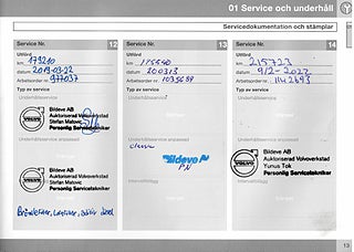 Fordonets historik - 28 händelser finns registrerade