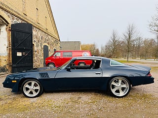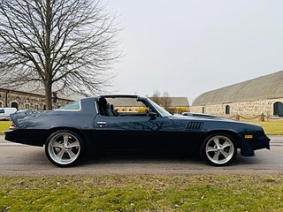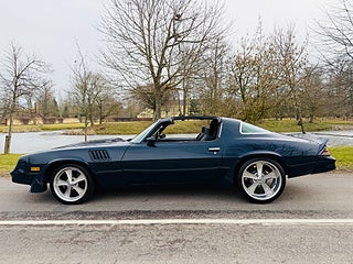 Den här attitydstinna Camaron föddes som en LT 75a. För ca 10 år sedan genomgick den en proffsig renovering/transformering till en 79a Z28 med T-Tops samt modernare inredning med Recarostolar. Mycket är även gjort för bättre väghållning och den ligger som ett strykjärn på vägen. Motorn är en moderat trimmad CSB på uppskattningsvis runt 250 villiga. Även TH350n är preppad för distinkta växlingar. Bilen går och låter som den ser ut och är riktigt rolig att köra. 18-tum fram och feta 20or bak bidrar till den kaxiga stancen. Ballare blir det inte för pengarna... ring mig direkt och se till att det blir du som klipper den!..