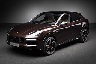 Porsche Cayenne Coupé e-hybrid Platinum Edition med unik spec. Bilen är lackerad i Mahogany metallic kombinerat med tvåtons läderinteriör i mojave beige och svart inkl 22" fälgar "Cayenne Sport Classic i exteriörfärg".