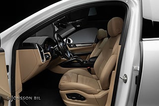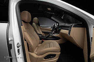 Leasebar Porsche Cayenne E-Hybrid Coupé, lackerad i Carrara White metallic kombinerat med påkostad läderinteriör i svart och mojavebeige.
