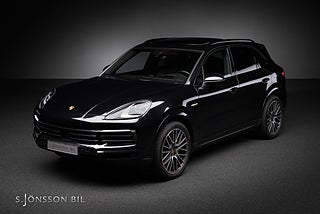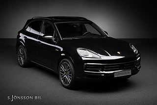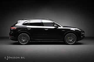 Porsche Cayenne E-Hybrid lackerad i Jet Black Metallic kombinerat med svart läderinteriör.