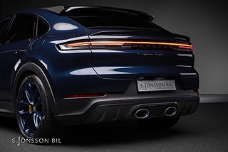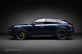 Porsche Cayenne Turbo E-Hybrid Coupé med GT Package. Extrautrustad för 216.500kr.