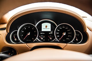 Interiören skäms inte heller för sig. läder och alcantara klär det mesta här med mycket exponerade sömmar och vackra detaljer så som de präglade Porsche-vapen i nackstöden. Övan ett alcantarklätt innertak som ramar in panoramataket. Tändningen till vänster som sig bör är det ända som behövs för att avnjuta 4,5l av våld som finns under huven.