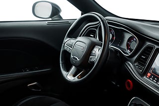 Dodge Challenger med 3.6-liters V6:a och automatisk växellåda lackerad i kulören "Pitch Black Clearcoat" med svart inredning i skinn/alcantara. Detta är en charmig bakhjulsdriven retro-coupé med klassisk muskelbils-design och modern teknik. Bilen erbjuder superb komfort, stabil gång och en mycket rymlig interiör med fantastiskt sköna sportstolar med mycket sidostöd. Modellen lanserades 1970 och tillverkades med olika motoralternativ fram till och med 1974. Designen är typiskt amerikansk med mycket "muskler" och stöddig framtoning. 2008 lanserades den nya Challengern som direkt blev en stor försäljningssuccé ända fram till den sista bilen rullade ut ur fabriken i Brampton 2023. Detta exemplar är sålt via Hedin som var auktoriserad återförsäljare och är inte privatimporterat.