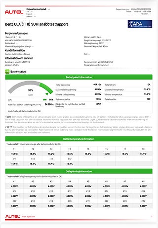 - Batterihälsa SOH 97%