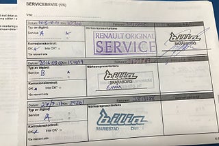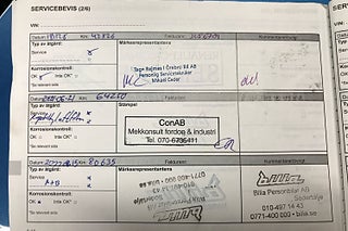 Fordonets historik - 19 händelser finns registrerade