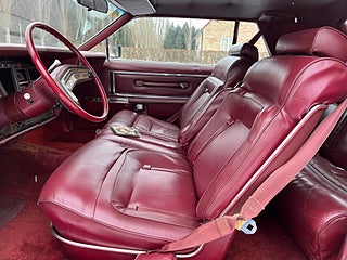 Här kommer en särdeles grann Mark 5:a i stiliga kulören Light Red Moondust Metallic med Burgundy skinninredning och vinyltopp. Den adopterades som 10-åring och har haft mogna ägare här (som det fina, skicket in- och utvändigt, varav en ägde den i 18 år. 208 hästars 460n levererar rejält och automaten växlar smutt. Den är ett under av komfort och har den Lincoln-typiska kassaskåpskänslan. Givetvis är den besiktnings- och skattebefriad. Bättre bilder kommer vid bättre väder, men vänta inte på det... ring mig direkt och boka en visning!..