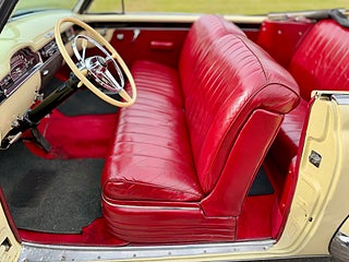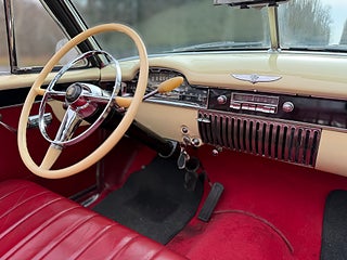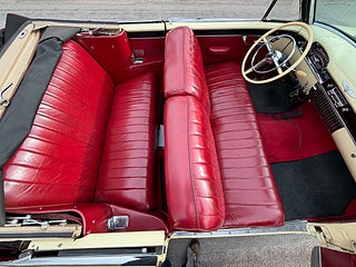 Här kommer en underbar ”cream puff” i ett fantastiskt fint skick, in- & utvändigt samt undertill. Färgställningen Fiesta Ivory med röd skinninredning är outstanding. Den är även i mekaniskt toppskick och en fröjd att glida runt i. 331 kubiktums toppventilaren och den fyrväxlade Hydra-Maticen levererar fint. Med endast 8000 tillverkade är de en ovanlig syn på bilträffarna och de är sällan till salu. Missa inte tillfället… ring mig direkt och boka en härlig provtur!..