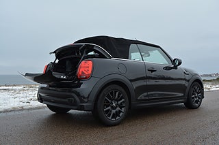 Möt våren i Mini Cooper Cabriolet, "Triple Black". Anpassad för vårt nordiska klimat, vinter såsom sommar. I den fantastiska kulören Midnight Schwarz metallic samt utrustad med den ultimata automatlådan med 7 steg. Denna Mini har mängder med tillval, exempelvis läderinredning | sportstolar. Allt blir ljusare med en Mini Cooper Cabriolet! Förbered dig på att älska varje ögonblick som du tillbringar bakom ratten på denna 4-sitsiga cabriolet som alltid är redo för nästa äventyr. Mini Cooper Cabriolet är en renodlad individualist perfekt för dig som vill köra nercabbat och njuta av bilkörning utan filter. Här får du den legendariska gokartkänslan med en dos av spontanitet då den elektriska suffletten kan öppnas på bara några sekunder. Den strömlinjeformade silhuetten med den tydligt definierade taklinjen gör att Mini Cooper Cabriolet drar blickarna till sig och den är redo att ta vara på varje ögonblick. Bilen är utrustad med kamkedja vilket kommer innebära lägre servicekostnader.