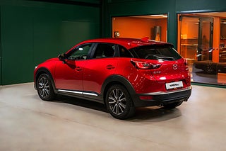 Mazda CX3 2,0 SKYACTIV-G av årsmodell 2015 lackerad i mycket snygga Soul Red Metallic med svart skinninredning.