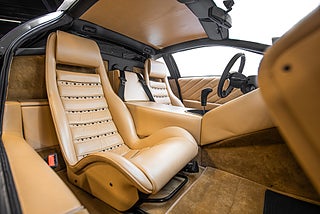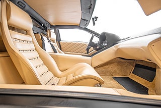 Exteriören är kolsvart och får bara kontrast från de polerade fälgarna och om man fångar en blick på interiören. Tidlös och kompromisslös. Ett klick och ett litet lyft för att öppna dörrarna som såklart går uppåt och du bjuds in till en lejongul interiör. Tycker man att exteriören var dramatisk så blir man inte besviken här. Sittpositionen känns helt bisarr och kan nästan inte liknas med något annat i bilvärlden. Mittkonsolen tycks rinna ner från vindrutan och kulminerar i en öppen kuliss som omger växelväljaren.