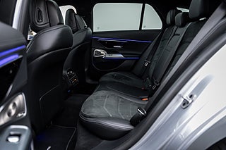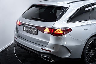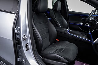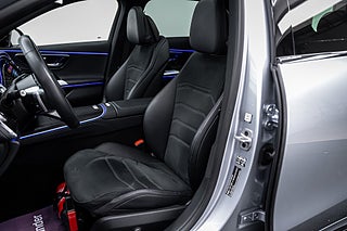 Exteriören imponerar direkt. Lackerad i den sofistikerade färgen High-Tech Silver Metallic, förädlad med Night Package och förädlad med 20-tums AMG lättmetallfälgar, ger bilen ett kraftfullt och självsäkert uttryck. Från AMG-frontspoilern till panoramasoltaket – det här är en bil som syns, och syns med stil.