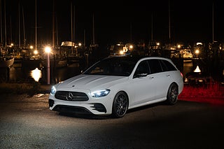 Synnerligen välvårdad E 300 de kombi med AMG-paket lackerad i Polarvit. Riktigt mycket tillval för att öka komforten samt att ge ett attraktivt utseende.