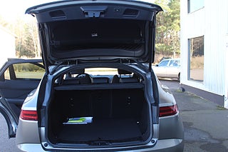 E-pace med den senaste faceliften och den fyrcylindriga tvåliters bensinmotorn på 200 hk. Bilen är en mildhybris (ej laddbar9 vilket håller ner utsläpp+förbrukning+fordonsskatt.