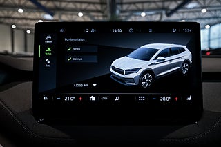 Utrustad med dragkrok, backkamera, Škoda Crystal Lighting, automatisk bagagelucka, delskinn/tyg, keyless go & start, SmartLink, Park Climatronic, navigator, rattvärme, BLIS (döda vinkel-varnare), kollisionsvarning, Lane Keeping Aid, Road Sign Information, trötthetsvarnare, Air Care, parkeringssensorer samt avstängningsbar airbag – en mycket komplett och trygg elbil.