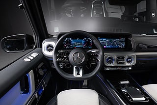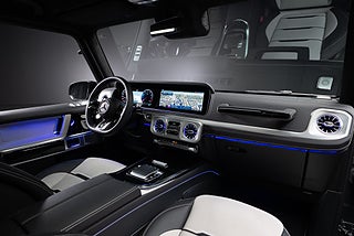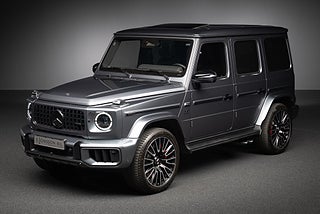 Mercedes-Benz AMG G63 V8 585 hk av allra senaste modellen (MY25) finns nu för omgående leverans hos oss i Viken. Lackerad i snygga färgen Selenitgrå metallic med MANUFAKTUR Nappaklädsel platinavit/svart med endast 1438 mil på mätaren.