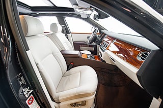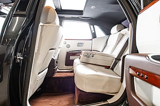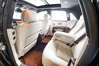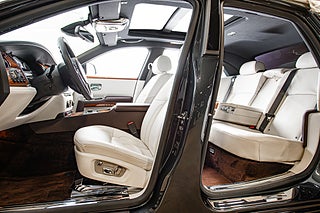 Insidan upplevs bäst från baksätet. När din chaufför öppnat bakdörren som är hängd i bakkant så kliver man med enkelhet in i motorindustrins absolut bästa miljöer. Med ett knapptryck stängs dörren och omvärlden ute. Den ljusa läder interiören bryts med dekor i trä som över dörrsidorna elegant dekorerats med 'RR' symbolen men även med läder partier i brunt. I intresse av att hålla insidan lika tidlös som utsidan döljs infotainment skärm bakom dekorpanelen. Allt här inne tycks vara tillverkat av antingen läder,trä eller aluminium. Alla reglage man rör har en bekväm tyngd bakom sig.