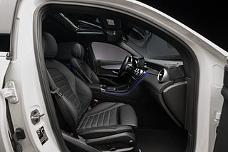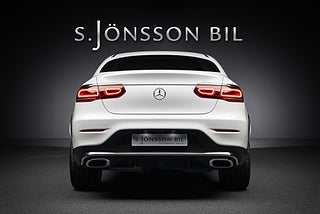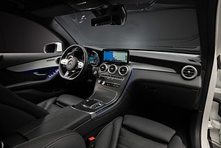 Snygg Mercedes-Benz GLC 300d AMG Coupe med den kraftiga 245 hästars motorn. Bränsleförbrukningen anges till låga 0,60 liter/mil enligt WLTP standarden vid landsvägskörning vilket ger 110 mils räckvidd.