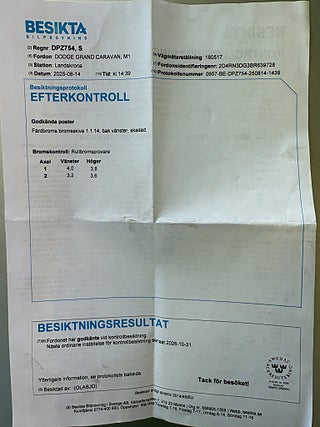 Obs där är en spricka i framrutans nederkant som inte har någon större påverkan än att man kan se den , den är inte i synfältet, så inget som har med besiktningen att göra!