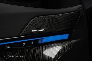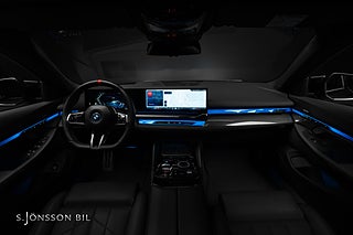 BMW i5 M60 xDrive, lackerad i Black Sapphire metallic kombinerat med läderinteriör i svart. Fint utrustad bil med bland annat panoramatak, Harman Kardon HiFi-System, komfortstolar och M Sportpaket Pro.