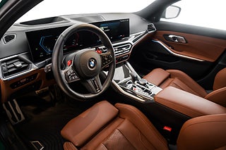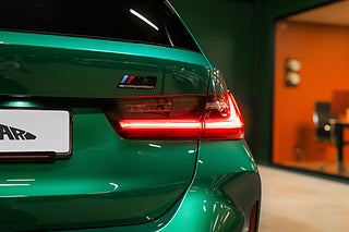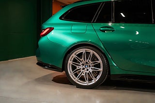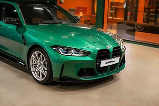 Svensksåld BMW M3 Touring av årsmodell 2024 lackerad i Isle of Man Green Metallic med helläderinredning i Individual Merino-Tartufo.